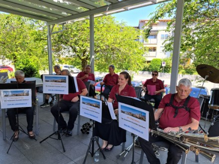 Nach gut 70 Minuten beendeten wir unser Konzert, genossen anschliessend die wohlverdiente Erfrischung flüssiger Art. Zur Ueberraschung aller, hatte unser Sepp die Konsumation, von uns unbemerkt, bezahlt MERCI VIUMOU.